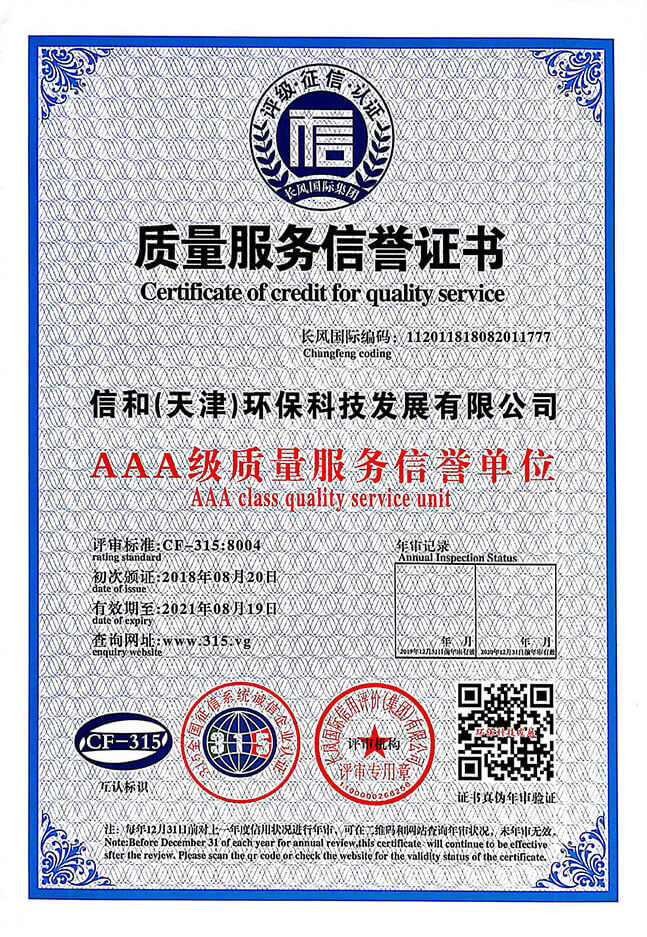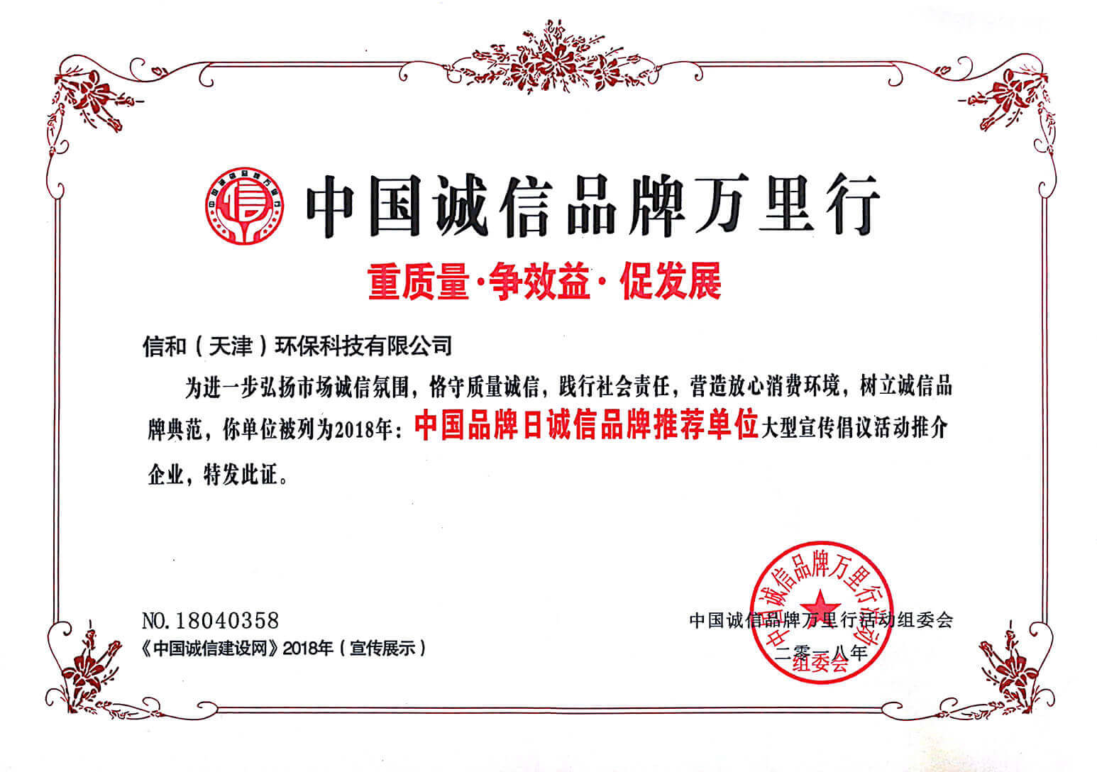 “質(zhì)量就是生命”。信和重質(zhì)量、守信用,被中國(guó)誠(chéng)信品牌萬(wàn)里行推薦“誠(chéng)信示范單位”、“AAA資信等級(jí)”、“AAA級(jí)誠(chéng)信經(jīng)營(yíng)示范單位”、“誠(chéng)信經(jīng)理人榮譽(yù)證書(shū)”、“誠(chéng)信企業(yè)家榮譽(yù)證書(shū)”、“中國(guó)產(chǎn)品質(zhì)量放心達(dá)標(biāo)企業(yè)”、“誠(chéng)信品牌聯(lián)盟會(huì)員單位”、“中國(guó)質(zhì)量誠(chéng)信AAA級(jí)品牌企業(yè)”、“中國(guó)百?gòu)?qiáng)優(yōu)秀企業(yè)”、“節(jié)能環(huán)保推廣產(chǎn)品”、“全國(guó)科技創(chuàng)新企業(yè)”等榮譽(yù)稱(chēng)號(hào)。